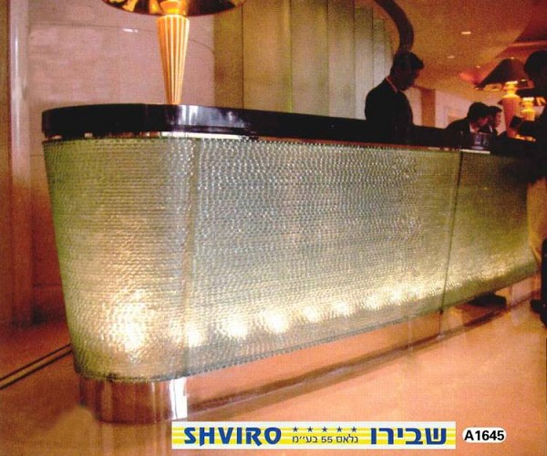דלפק זכוכית מדוגמת שכבות, עם תאורת LED סמויה.