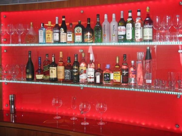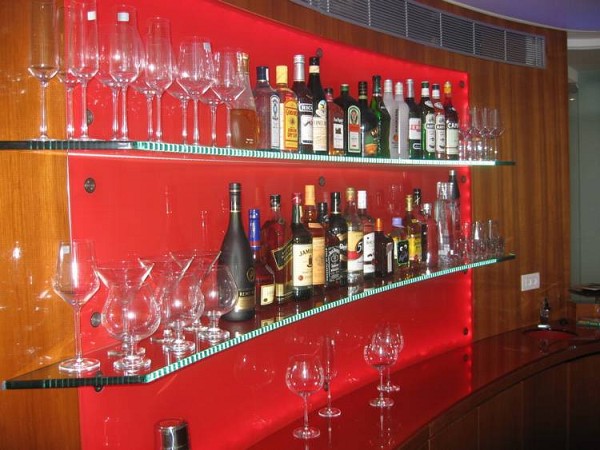 מדפי זכוכית בר + תאורה - מבית שבירו חולון