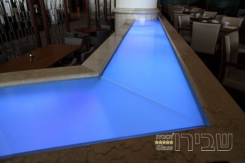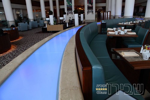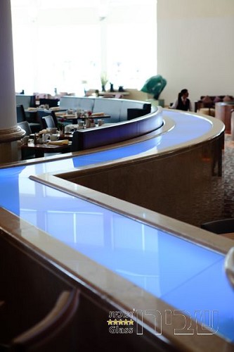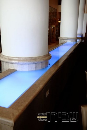 לובי בית מלון דיוויד אינטרקונטיננטל בתל אביב, סגירת אדנית / דלפק בזכוכית חלבית עם תאורת LED סמויה.