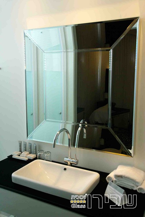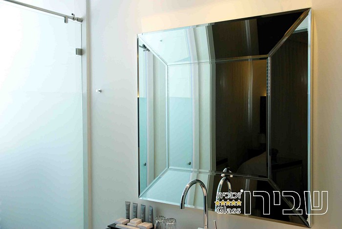 מראה מרובעת עם פאזה רחבה בהיקף, בהדבקה על גבי הקיר.